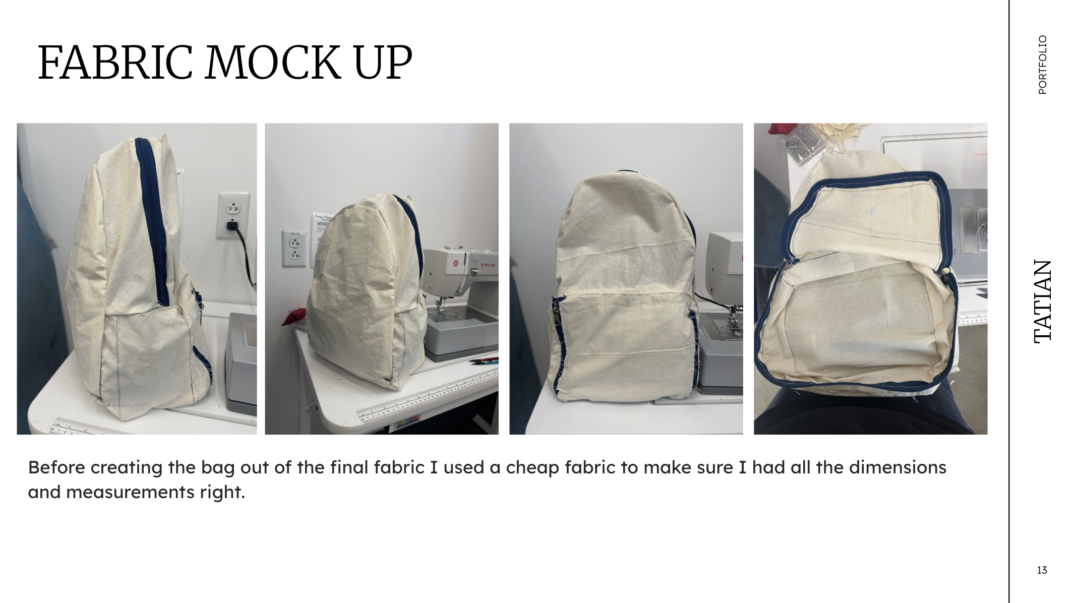 This project involved extensive prototyping and constant adaptation. It was my first experience working with soft goods, which proved to be a major challenge as I learned how to translate low-fidelity models into precise panel patterns for the final bag. The process required patience, iteration, and attention to detail. In the end, I created a functional sample that I tested in real conditions and featured in a promotional video.